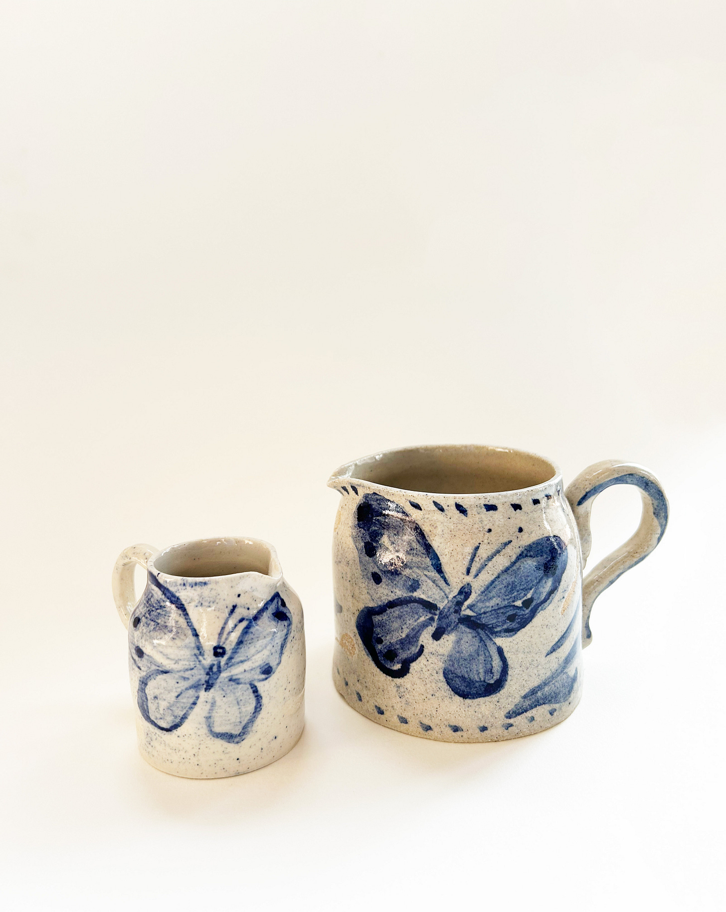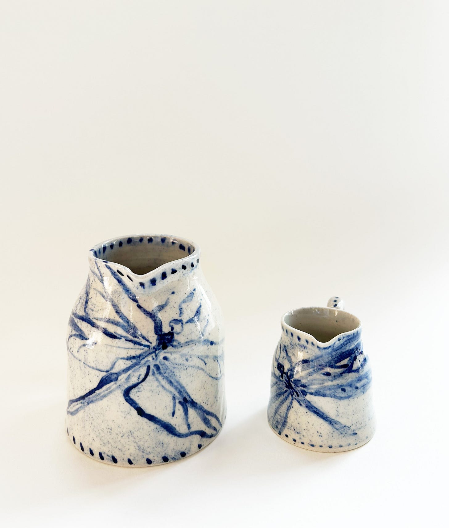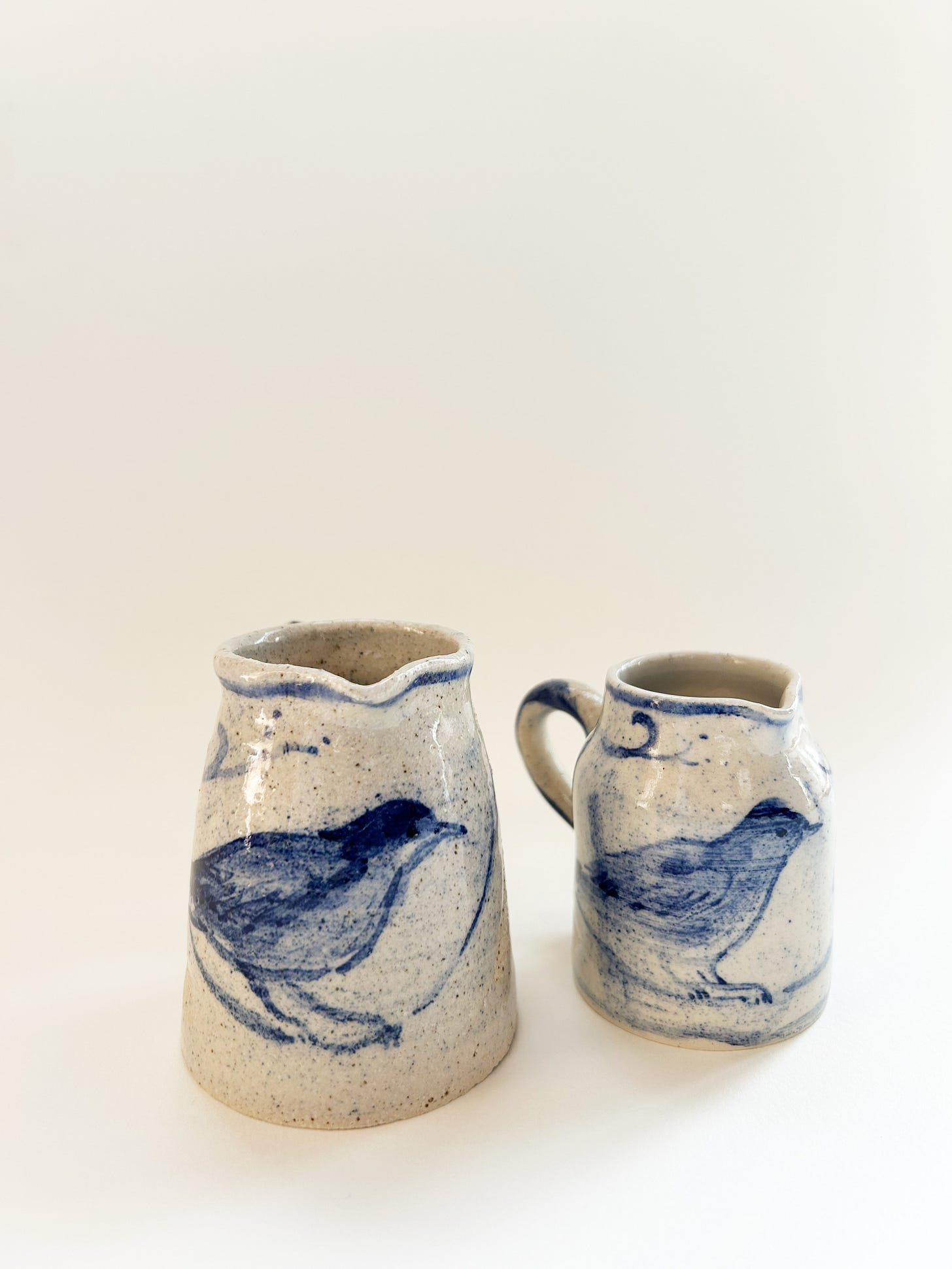 I’m not that pleased with this recent batch - cobalt oxide can be a bit unpredictable, and the decoration on the jugs came out a bit too dark. This along with the blue-tinted glaze makes them feel a bit heavy, not a bright and fresh as my last batch. Here’s a few I’m quite pleased with though. ‘Mother and child’ jugs for mother’s day and my first little eggcup: